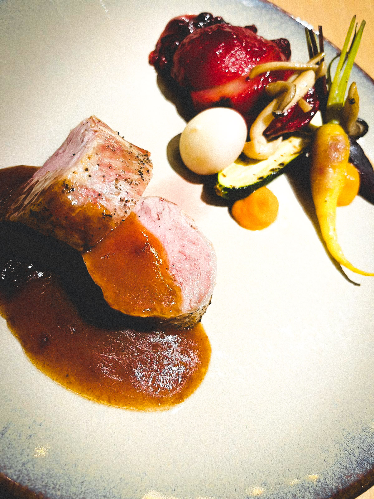 Bloemkoolgratin Spekbonenrolletje Gepocheerd peertje met veenbessen (seizoen) Provençaalse tomaatjes Geglaceerd witloofstammetje Champignons met fijne kruiden Geglaceerde jonge worteltjes Appeltje met veenbessen (seizoen) Spruitjes met spekblokjes en zoete appel Opgebakken groentenmix (venkel, jonge worteltjes, babymais,
