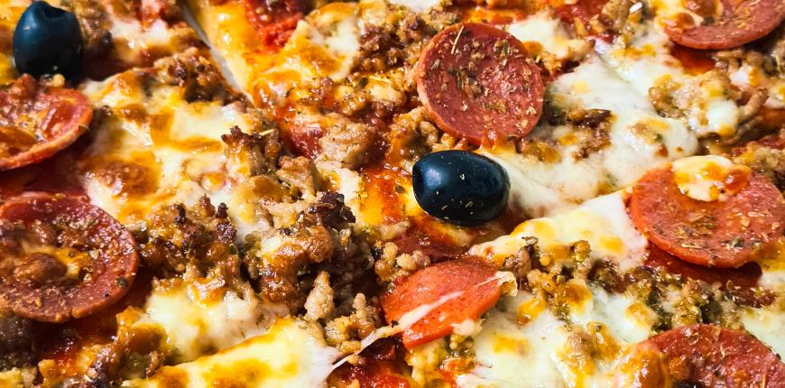 - Pizza Rode Duivels (tomaat, kaas, pikante salami, ajuin, champignons, olijven)